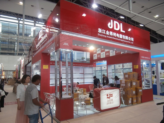 契合金得利集團(tuán)的品牌形象和產(chǎn)品特性,采用矩形結(jié)構(gòu),再搭配燈具燈光的效果,襯托出展位高端、時(shí)尚的氛圍,突出一種現(xiàn)代、大氣的時(shí)尚品味。