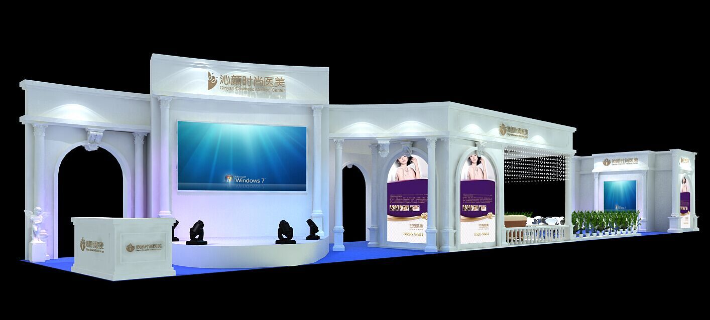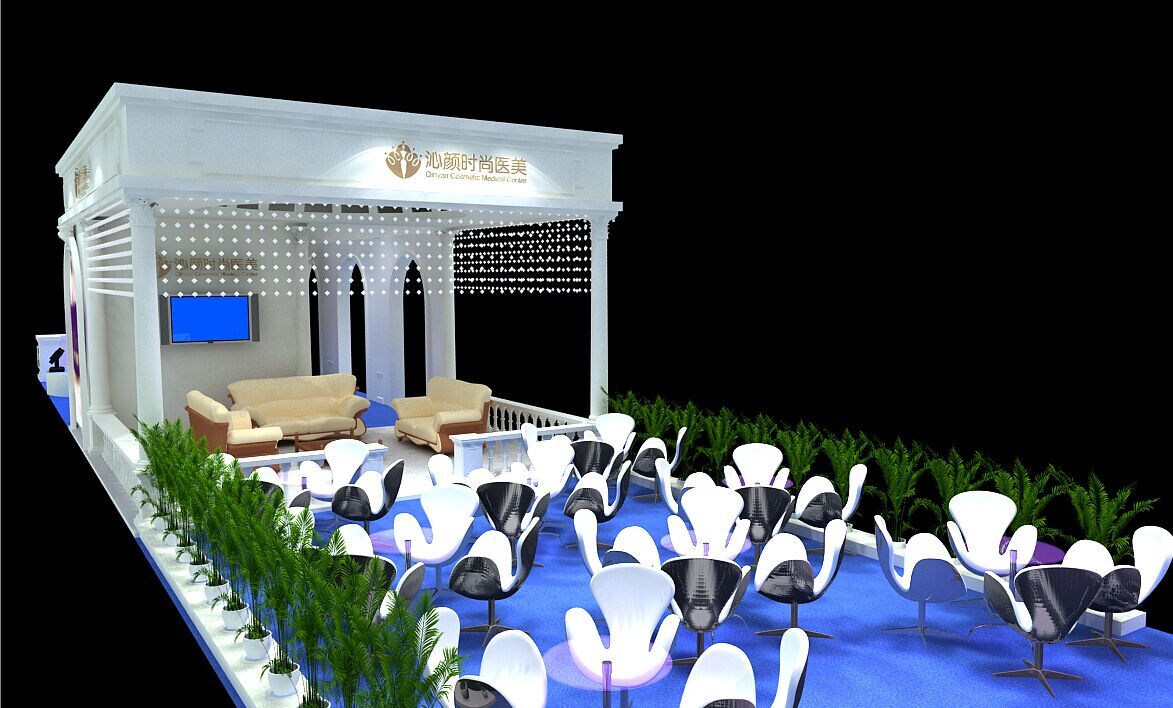 契合沁顏的品牌形象和產(chǎn)品特性,采用矩形結(jié)構(gòu),再搭配燈具燈光的效果,襯托出展位高端、時尚的氛圍,突出一種現(xiàn)代、大氣的時尚品味。