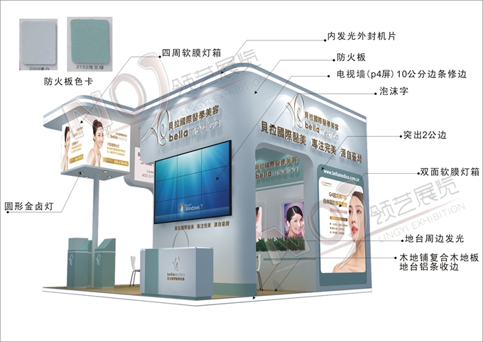 契合貝拉國(guó)際的品牌形象和產(chǎn)品特性,采用矩形結(jié)構(gòu),再搭配燈具燈光的效果,襯托出展位時(shí)尚、簡(jiǎn)約的氛圍,突出一種現(xiàn)代、活力的時(shí)尚品味。