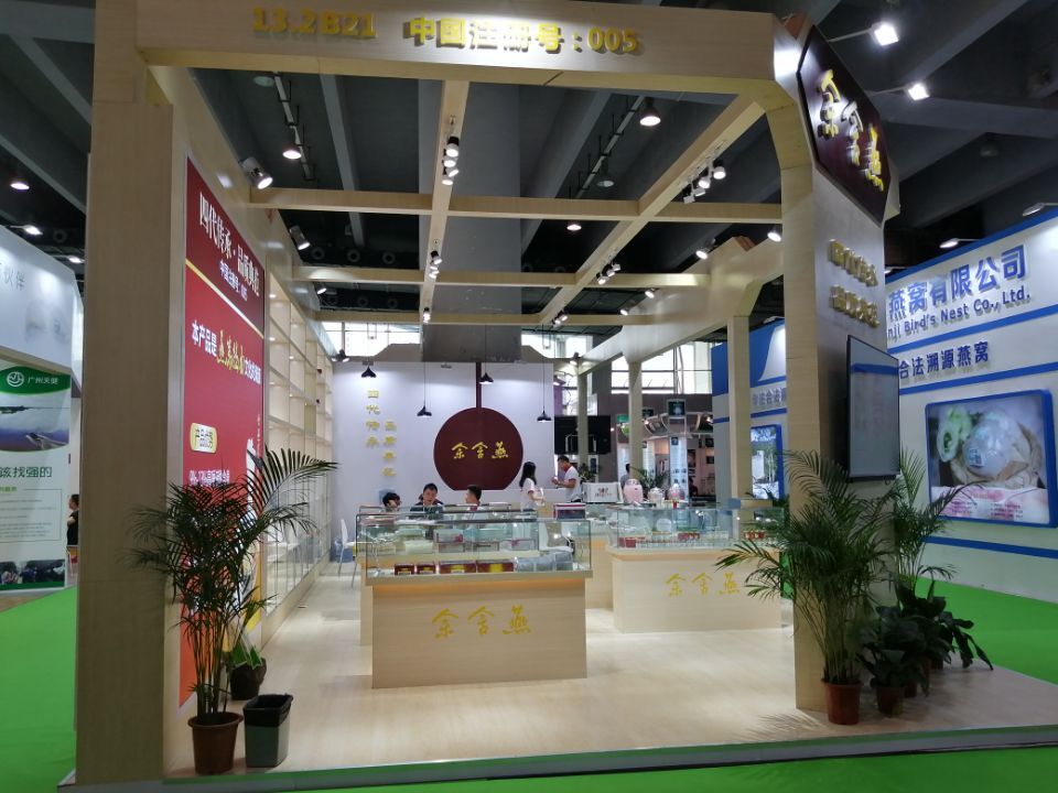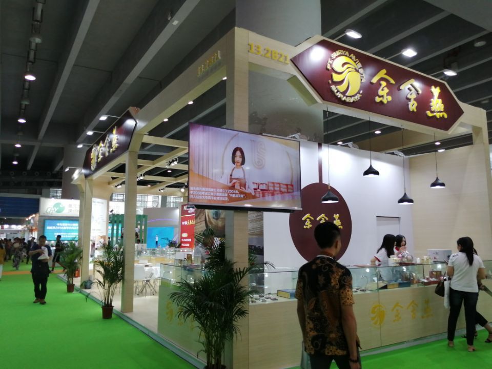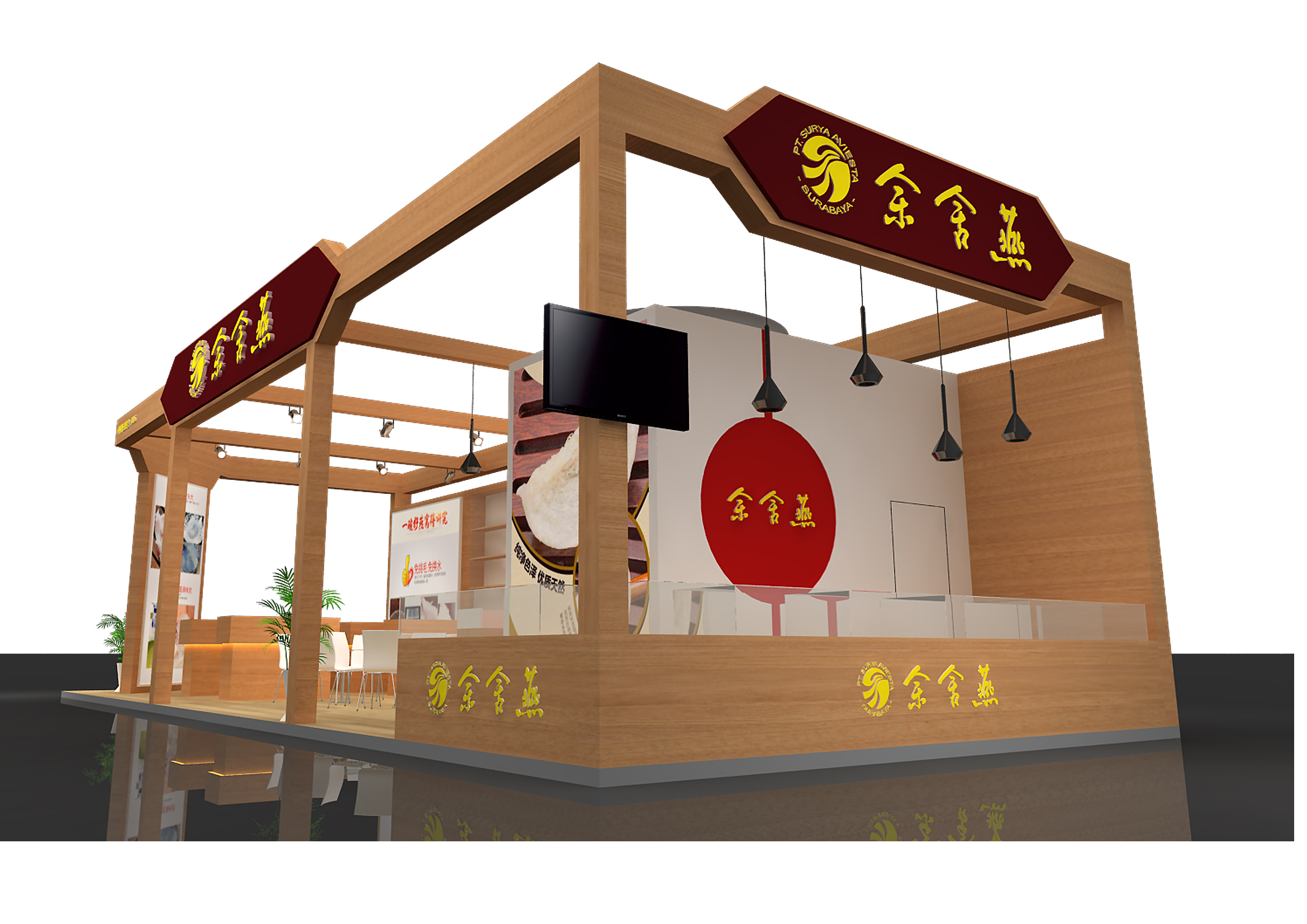 契合余舍燕的品牌形象和產品特性,采用開放結構,再搭配燈具燈光的效果,襯托出展位大氣、豪華的氛圍,突出一種簡約、時尚的品味。