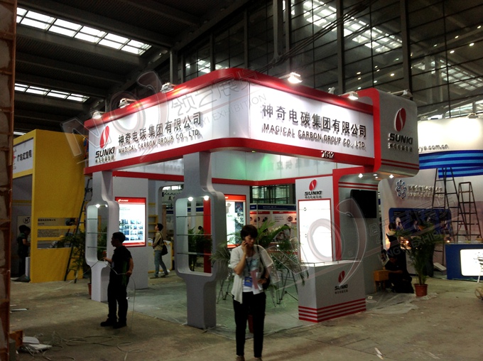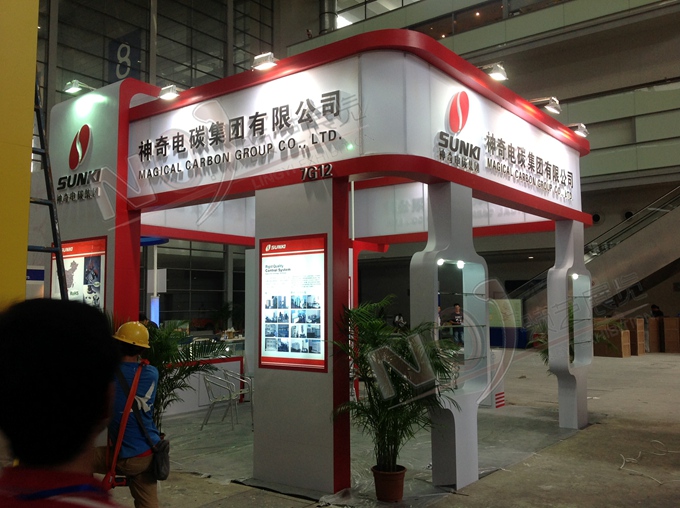 契合神奇電碳的品牌形象和產(chǎn)品特性,采用框型結(jié)構(gòu),再搭配燈具燈光的效果,襯托出展位簡潔、明亮的氛圍,突出一種創(chuàng)新、簡約的時尚品味。