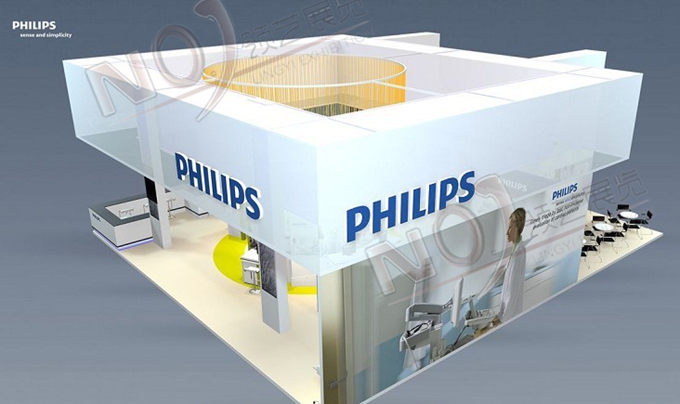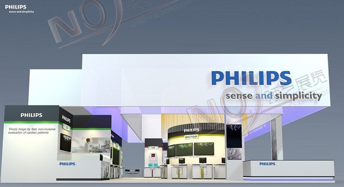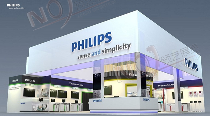 契合的飛利浦品牌形象和產(chǎn)品特性,采用矩形結(jié)構(gòu),再搭配燈具燈光的效果,襯托出展位高端、時(shí)尚的氛圍,突出一種現(xiàn)代、歐美的時(shí)尚品味。