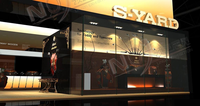契合的S-YARD品牌形象和產(chǎn)品特性,采用矩形結(jié)構(gòu),再搭配燈具燈光的效果,襯托出展位高端、時尚的氛圍,突出一種現(xiàn)代、歐美的時尚品味。
