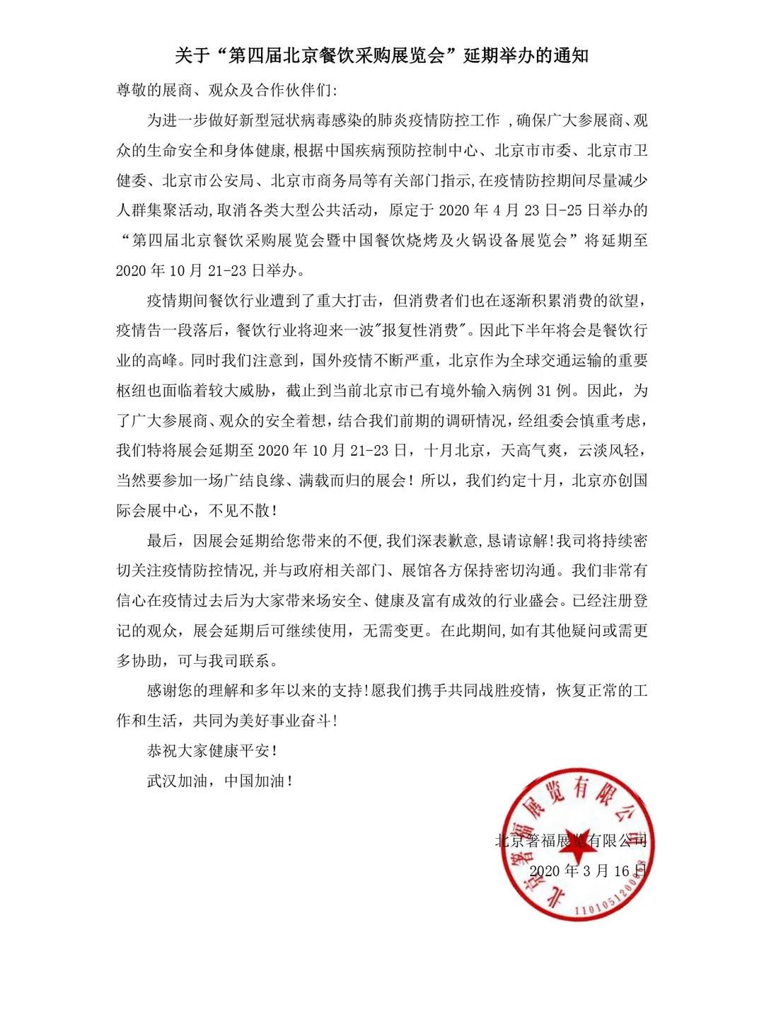 根據(jù)餐飲展設(shè)計(jì)搭建公司領(lǐng)藝展覽了解到,原定于2020年4月23日-25日舉辦的“第四屆北京餐飲采購(gòu)展覽會(huì)暨中國(guó)餐飲燒烤及火鍋設(shè)備展覽會(huì)”將延期至2020年10月21-23日舉辦。如需餐飲展展會(huì)設(shè)計(jì)請(qǐng)聯(lián)系領(lǐng)藝展覽,希望我們能在餐飲展搭建上為您添磚加瓦,祝各位朋友收獲多多,滿載而歸!
