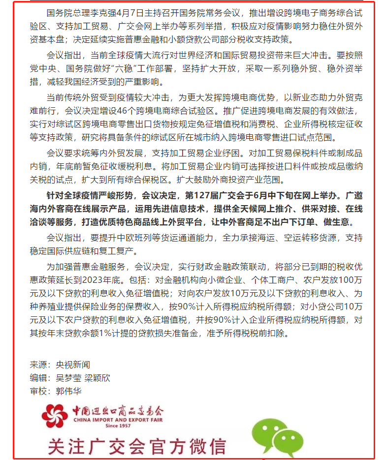 根據(jù)廣交會(huì)設(shè)計(jì)搭建公司領(lǐng)藝展覽了解到4月7日,央視新聞播發(fā)了《國(guó)務(wù)院:第127屆廣交會(huì)于6月中下旬在網(wǎng)上舉辦》。如需廣州展臺(tái)設(shè)計(jì)請(qǐng)聯(lián)系領(lǐng)藝展覽,希望我們能在展會(huì)搭建上為您添磚加瓦,祝各位朋友收獲多多,滿載而歸!