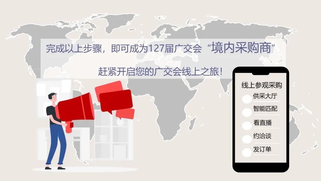 在此,誠邀廣大“境內(nèi)采購企業(yè)”參加第127屆廣交會,體驗中國歷史最悠久的貿(mào)易盛會與強(qiáng)大互聯(lián)網(wǎng)技術(shù)的創(chuàng)新融合,共享全球商機(jī),實(shí)現(xiàn)貿(mào)易高效對接。