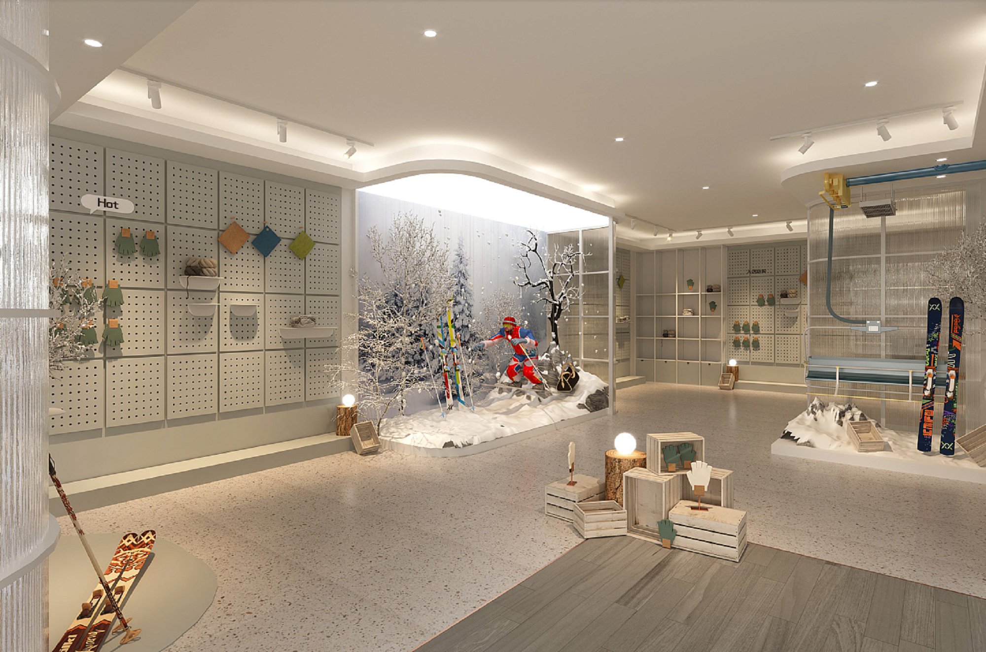 契合雪花秀的品牌形象和產(chǎn)品特性,采用開放式結(jié)構(gòu)進(jìn)行合理的分區(qū),再搭配燈具燈光的效果,襯托出展廳大氣、豪華的氛圍,突出一種簡(jiǎn)約、時(shí)尚的品味。