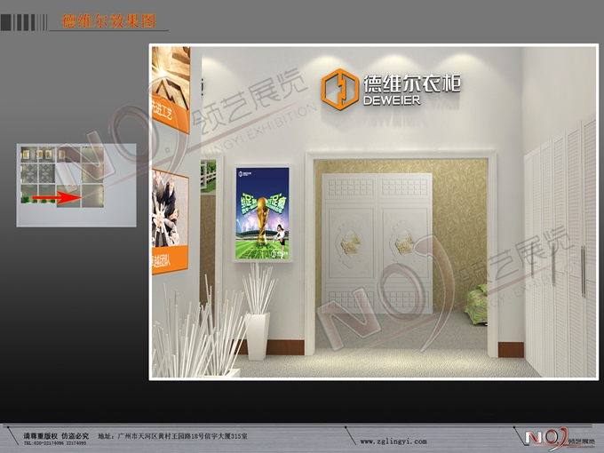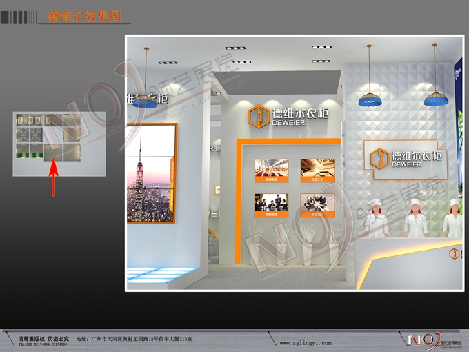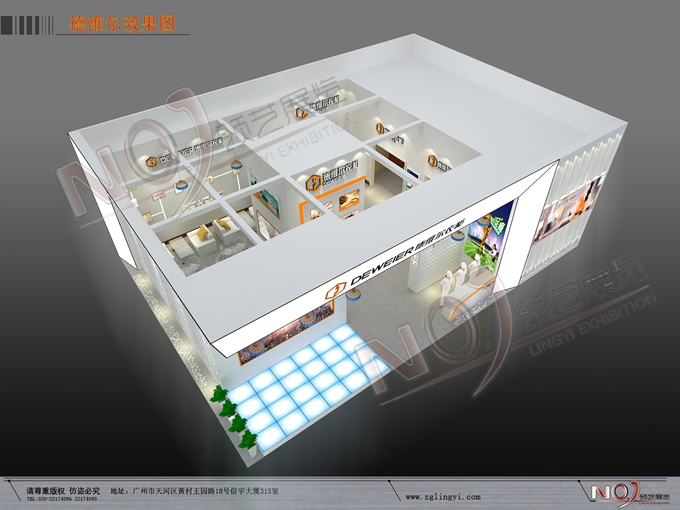 契合德維爾的品牌形象和產(chǎn)品特性,采用框型結(jié)構(gòu),再搭配燈具燈光的效果,襯托出展位時尚、簡約的氛圍,突出一種融合、個性的時尚品味。