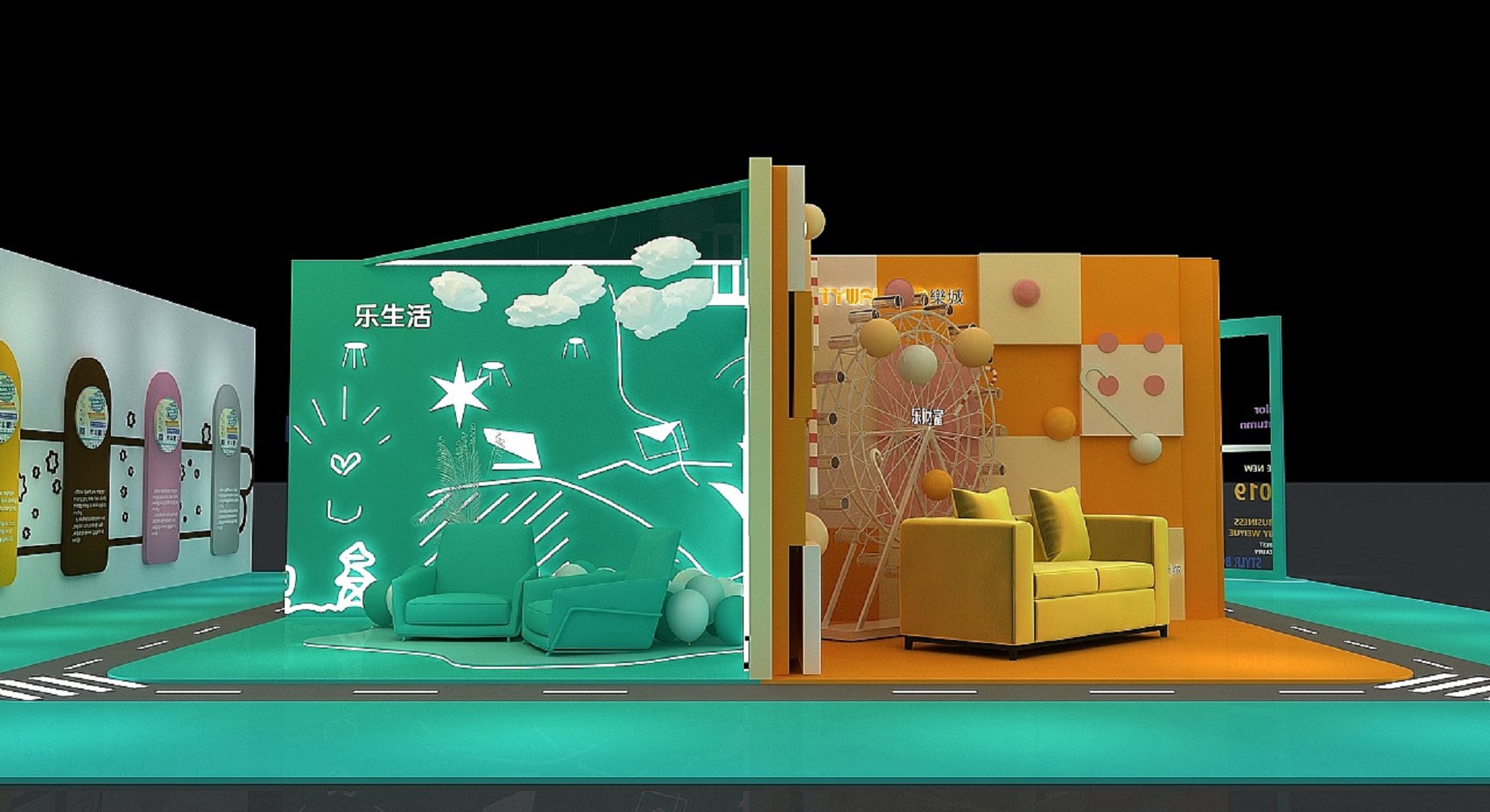 巧妙的運(yùn)用紅色、藍(lán)色作搭配,著重突出品牌和產(chǎn)品的展示,使整個(gè)展位時(shí)尚新穎。