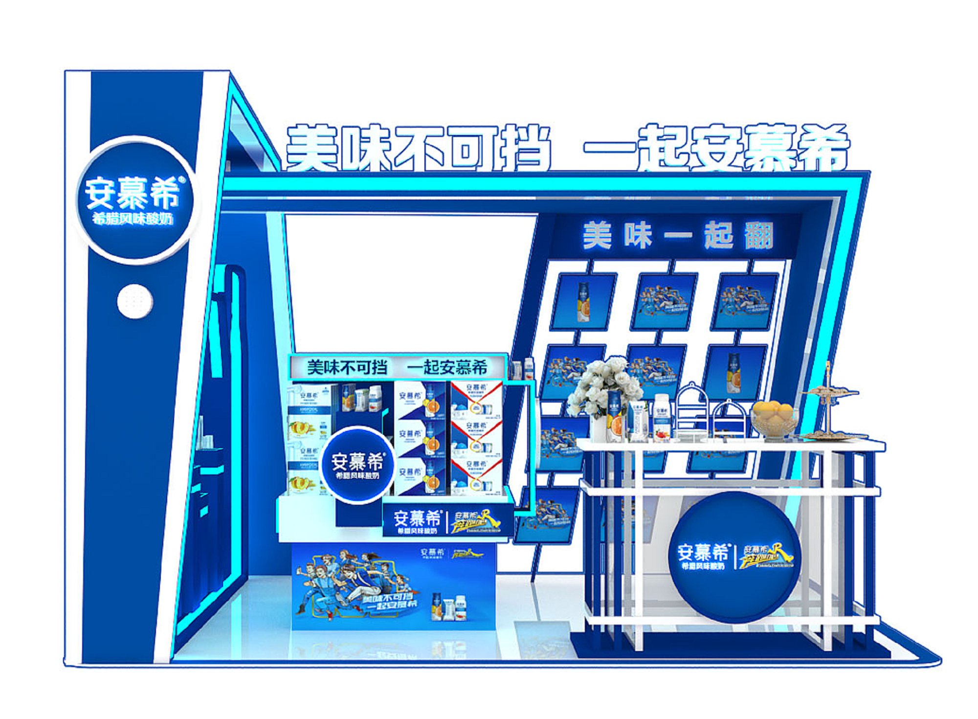巧妙的運(yùn)用藍(lán)色作搭配,著重突出品牌和產(chǎn)品的展示,使整個(gè)展位時(shí)尚新穎巨有活力。